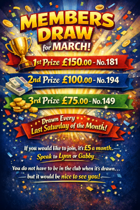Our large concert room, lounge and meeting rooms are all available for members and non members however there will be a booking fee for all non members. So whatever your occasion we have the facilities to meet your requirements. Free Wi-Fi is available throughout the club so why not come down, have a drink and check your e-mail and social media.