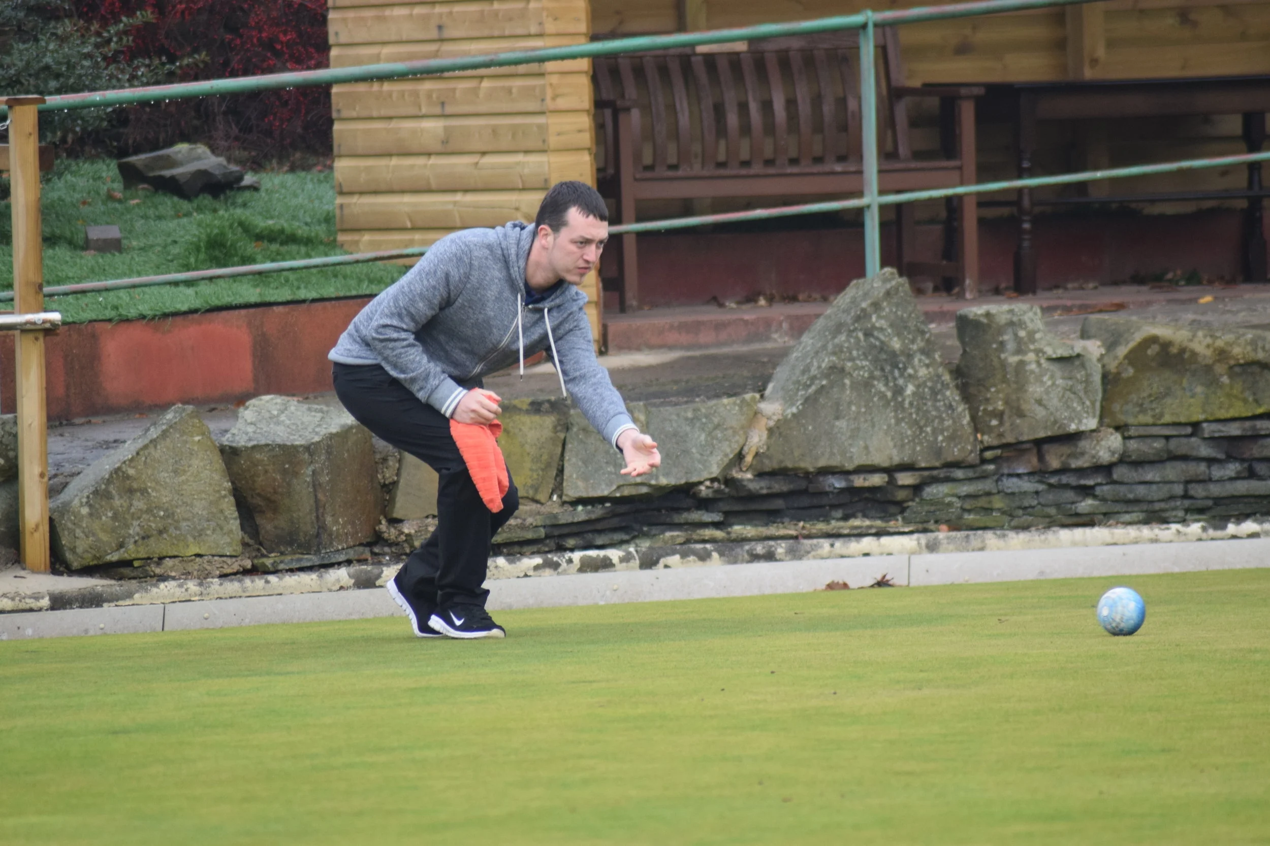 Nomads (Keith Hatzer, Philip Holroyd, John Armitage and Gareth Coates) required thirteen points to retain their championship and were matched with already relegated Bronte’s (Derek Pollard, Pat Lonsdale, Martyn Benson and David Hemsley). Holroyd and Pollard were first up and Holroyd had the bit between his teeth from the off scoring ten before Pollard replied. Holroyd wasn’t about to let this slip and went on to record a single figure win. Armitage conceded two singles to Lonsdale but had reached nine before Lonsdale scored again, Armitage going on to record a single figure win like Holroyd. Only three more points required as Coates went on against Benson. This looked like being a much closer affair as points were exchanged to five across and Benson led 6-5. Coates then went on a run to turn it round and lead 13-6. Benson never recovered, going down 21-11. Nomads were Champions again as their captain took to the green for his game with the Bronte’s captain Hemsley. Hemsley started the better, taking the first four chalks and going on to lead 7-1. Hatzer came back strongly as he bowled from the corner to the green centre and back, going on to lead 16-8. Hemsley recovered but with Hatzer still leading 18-12 and 19-16 he was still favourite but Hemsley took a pair and two singles to go into the lead 20-19, Hatzer levelled at 20-20, and at the final end, on a tight measure, it was Hemsley who took the points.